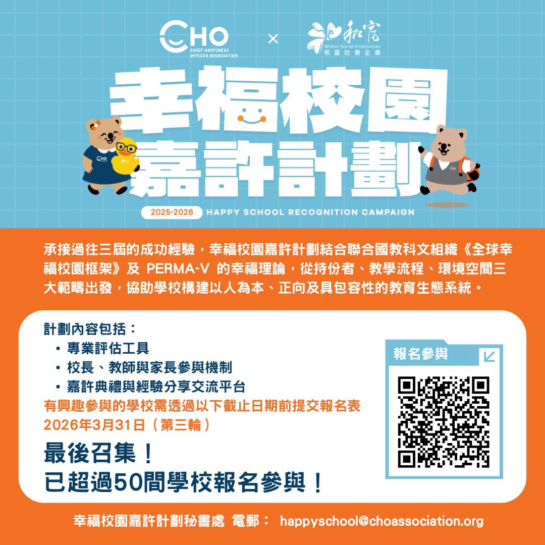 The Chief Happiness Officer Association Limited (CHOA) is a non-profit organization founded in 2021, CHOA has invited over 20 distinguished leaders from the business, industry and education sections to serve as advisors. The 2025 UN World Happiness Report, Hong Kong’s ranking has continued to decline to 88th this year. Meanwhile, a 2022 Forbes study found that happy employees are up to 20% more productive than unhappy ones. CHOA’s initiatives are rooted in the belief that happiness and sustainability are intrinsically linked, and their efforts have yielded significant positive impacts across multiple dimensions. The Chief Happiness Officer Association (CHOA) aims at fostering workplace culture and sustainability within communities, organizations, and society at large.