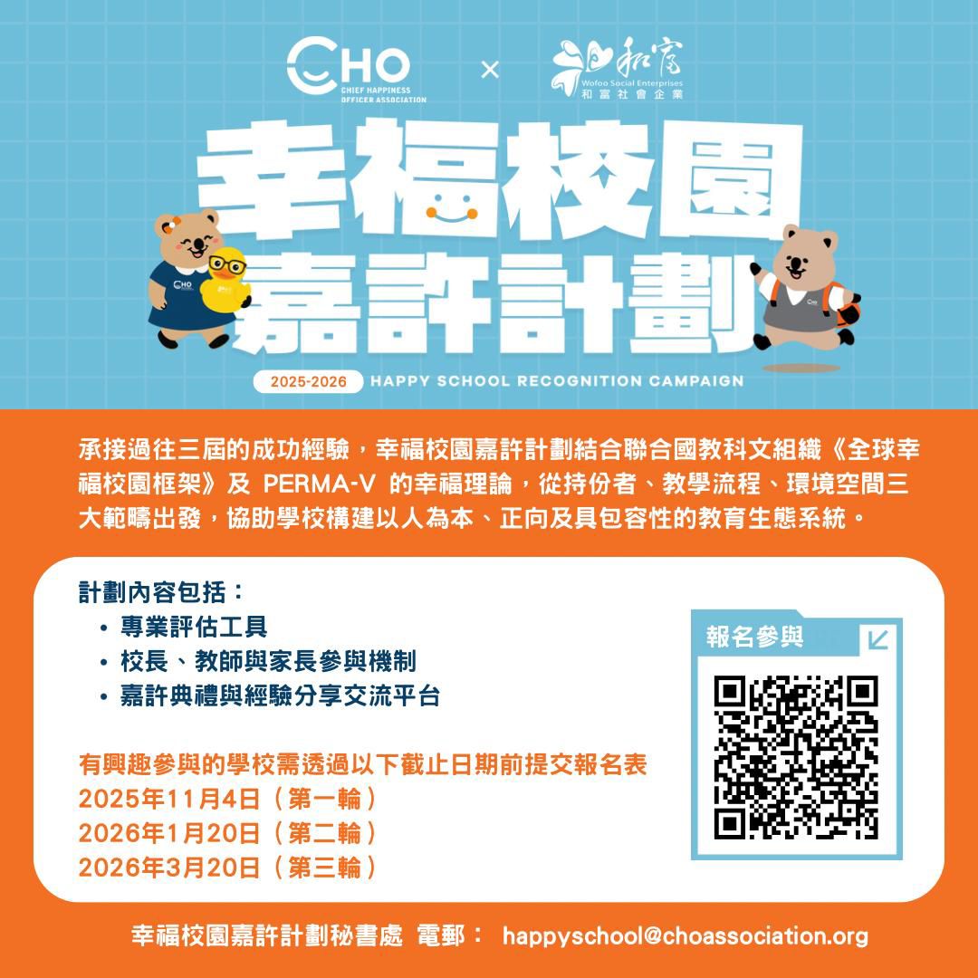 The Chief Happiness Officer Association Limited (CHOA) is a non-profit organization founded in 2021, CHOA has invited over 20 distinguished leaders from the business, industry and education sections to serve as advisors. The 2025 UN World Happiness Report, Hong Kong’s ranking has continued to decline to 88th this year. Meanwhile, a 2022 Forbes study found that happy employees are up to 20% more productive than unhappy ones. CHOA’s initiatives are rooted in the belief that happiness and sustainability are intrinsically linked, and their efforts have yielded significant positive impacts across multiple dimensions. The Chief Happiness Officer Association (CHOA) aims at fostering workplace culture and sustainability within communities, organizations, and society at large.